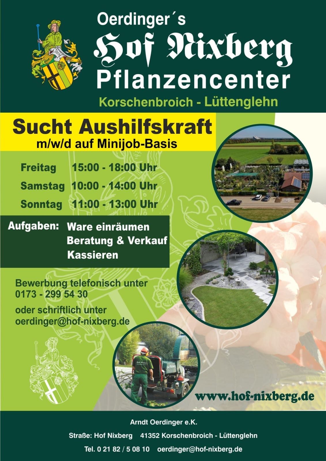 Du hast Freude am Umgang mit Kunden und Interesse an Pflanzen? Dann unterstütze unser Team auf Minijob-Basis im Verkauf und bei der Warenpräsentation.
